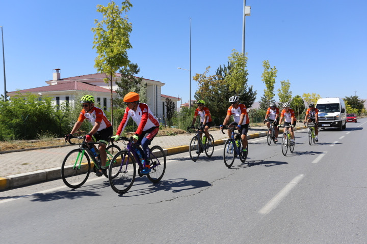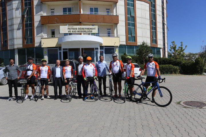 Patnos’a ulaşan gönüllü bisikletli grup, "Türkiye'de Eğitime Destek Olmak İçin Kars'tan Tatvan'a 950 Kilometre Pedal Çeviriyoruz" mottosuyla farkındalık oluşturuyor.