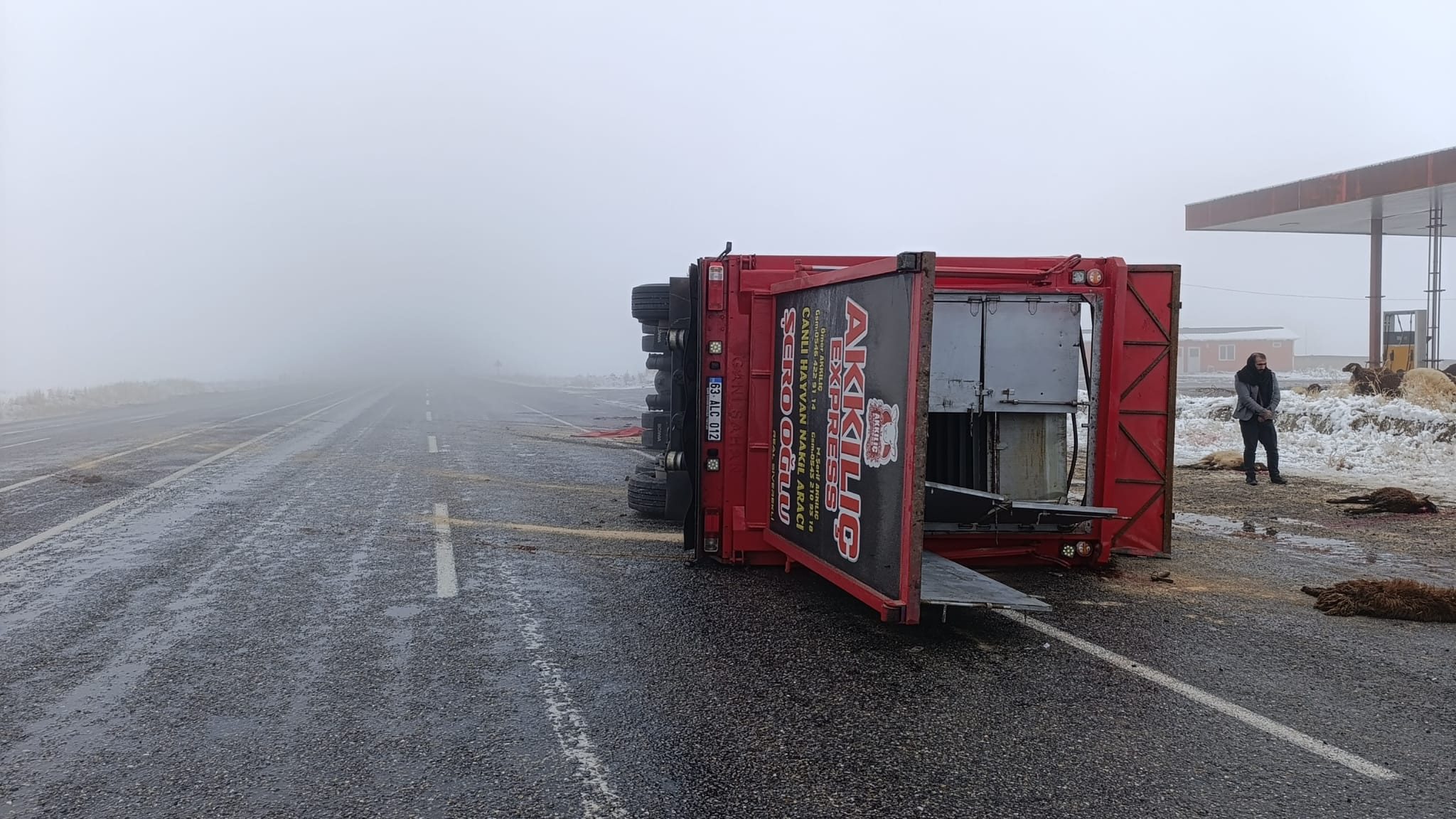 Kazanın şiddetiyle tırın dorsesinde bulunan hayvanlar savruldu. Çevredekilerin ihbarı üzerine olay yerine jandarma ve kurtarma ekipleri sevk edildi. Yapılan ilk incelemelerde, dorsede bulunan 10 küçükbaş hayvanın kaza yerinde telef olduğu belirlendi.