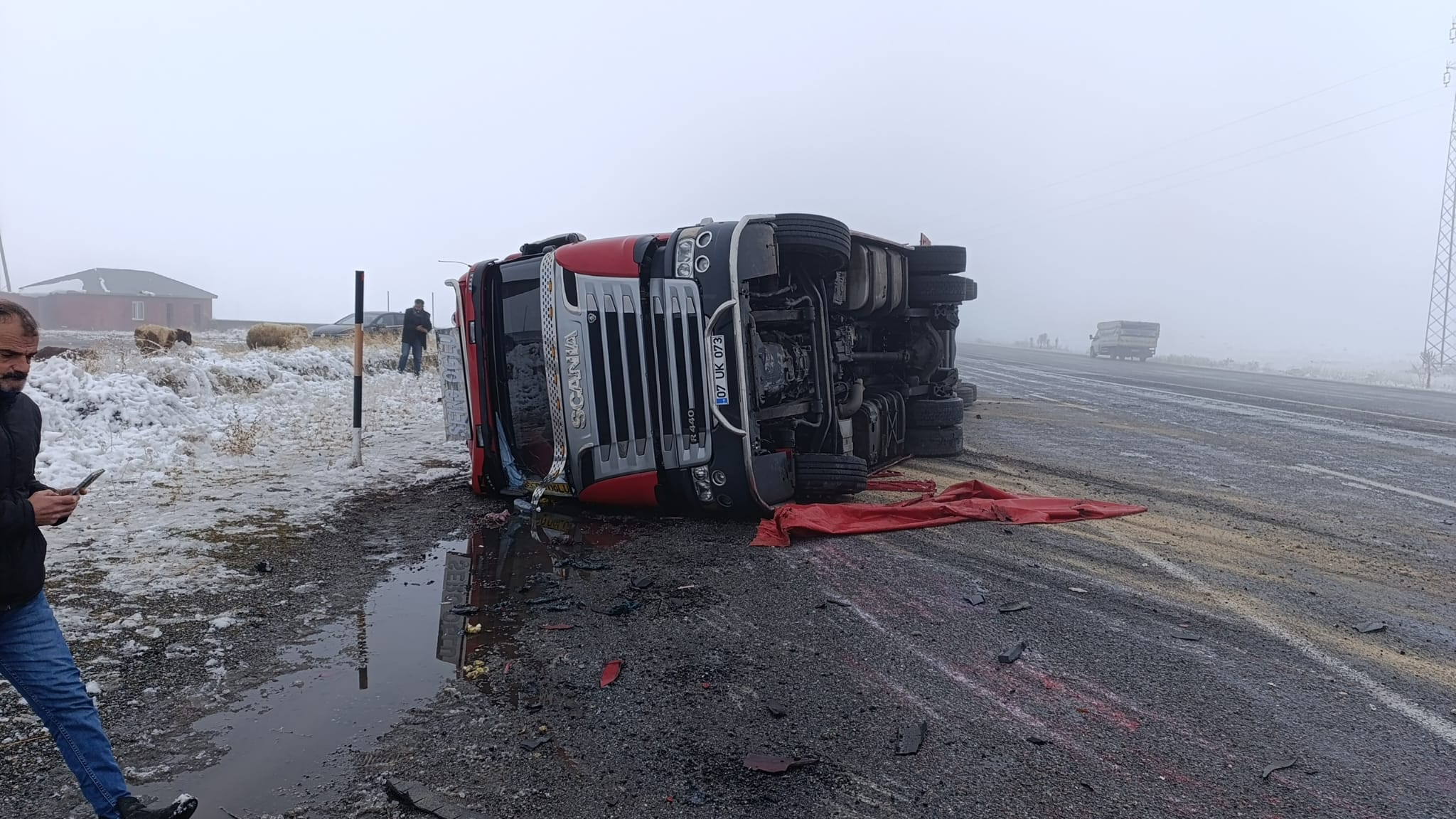 Edinilen bilgilere göre kaza, bugün Patnos karayolu üzerinde meydana geldi. Henüz belirlenemeyen bir nedenle M. Ş. A. idaresindeki 07 UK 073 plakalı tır direksiyon hakimiyetini kaybedip yoldan çıkarak yan yattı.