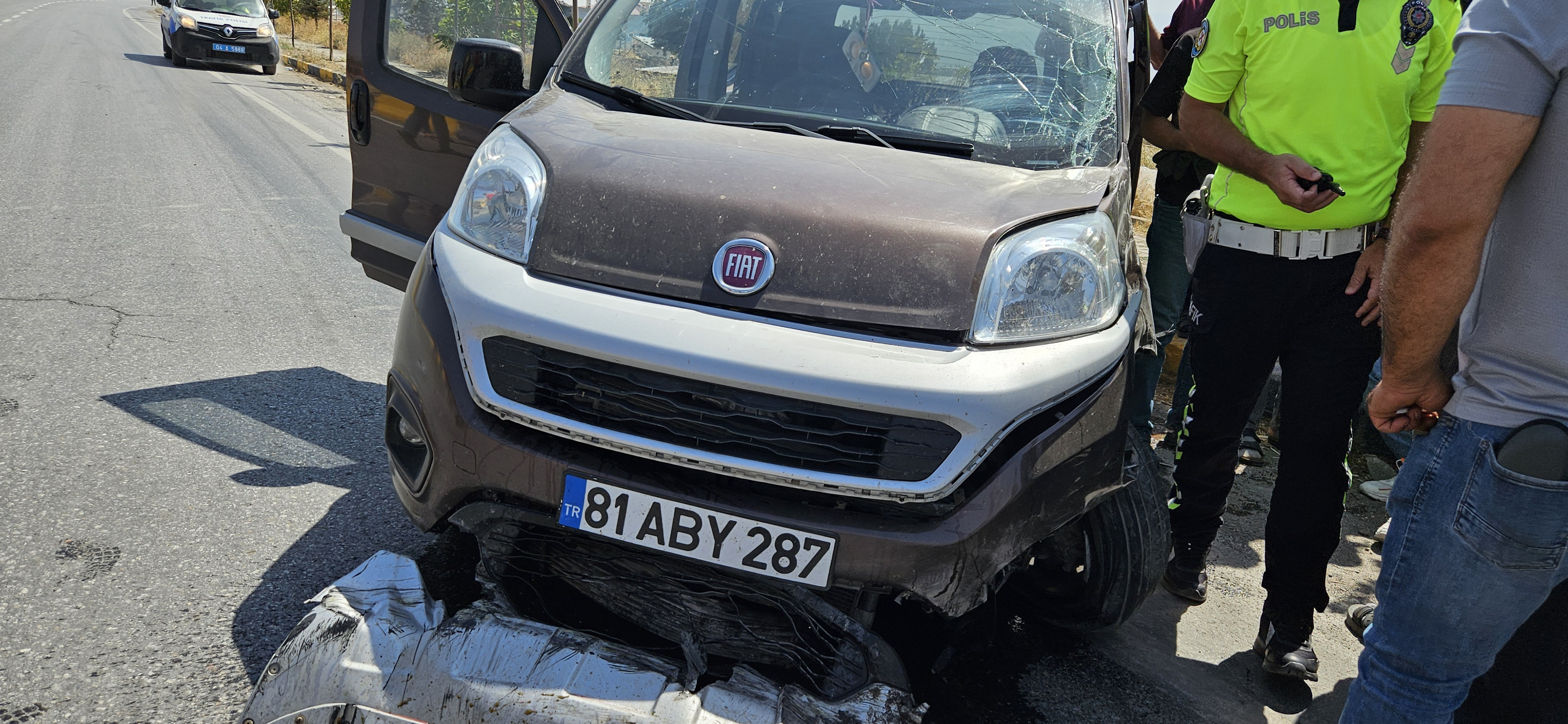 Kırmızı ışık ihlali nedeniyle ticari kamyonet önünde araca çarparak kontrolden çıktı. Kontrolden çıkan araç aydınlatma direğini devirerek yan yattı.