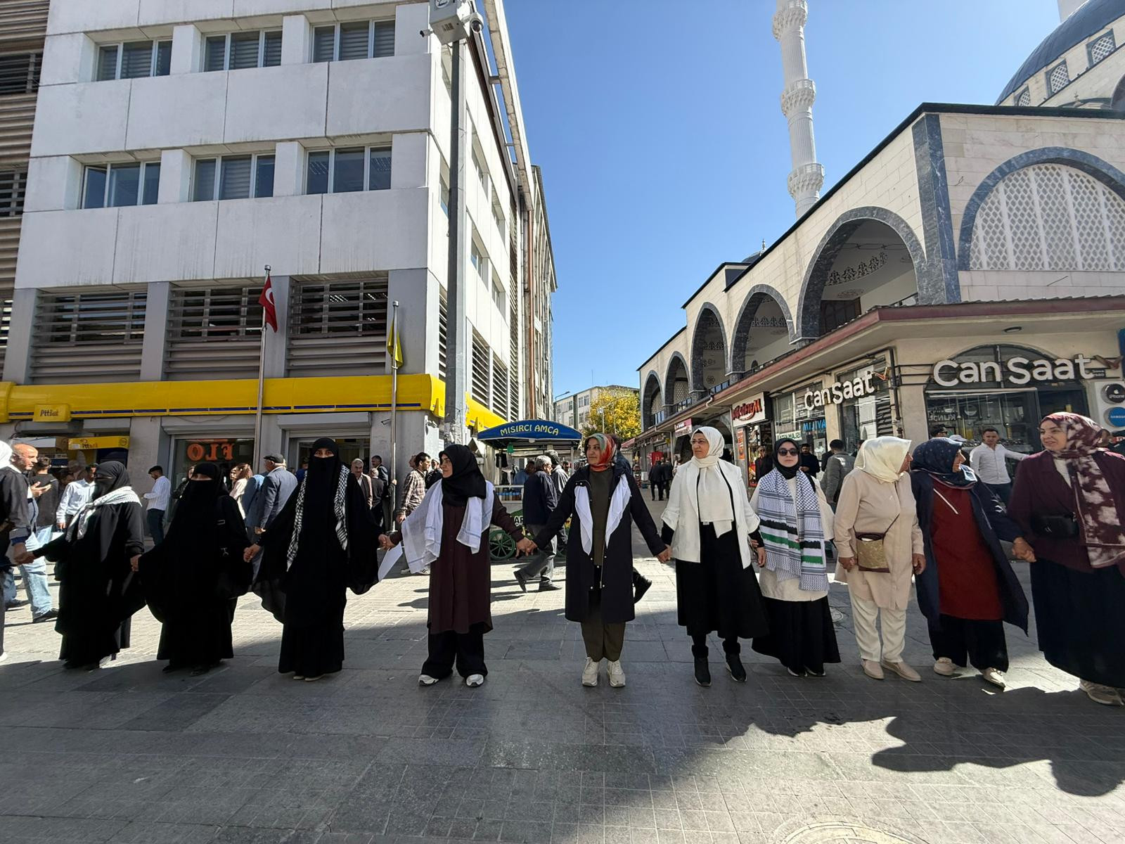 Bugün kadınlar olarak Gazze’nin sessiz çığlığına ses olmak için el ele verdiğimizi tüm dünyaya göstermek adına meydanlardayız.